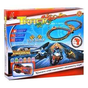 Автотрек на батарейках – приглашает окунуться в мир высоких скоростей и почувствовать себя в роли настоящих гонщиков и посоревноваться на самой настоящей гоночной трассе. Кто из них проявит лучшие качества гонщика? Зависит от вас! Такой набор подходит для использования даже юными гонщиками. Он не содержит никаких сложных элементов, однако чрезвычайно увлекателен. А гонка получается зрелищной еще за счет того, что машинки оборудованы подсветкой. Кроме того, трек очень мобильный, ведь его можно использовать в любом месте, даже вне помещения, так как он питается не от сети, а от батареек.