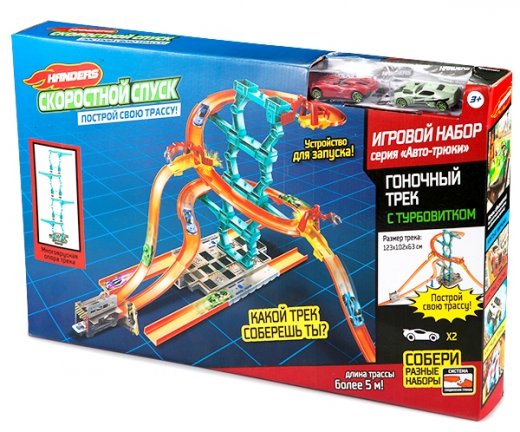 Состав набора: сборная трасса, 2 машинки, дополнительные детали.