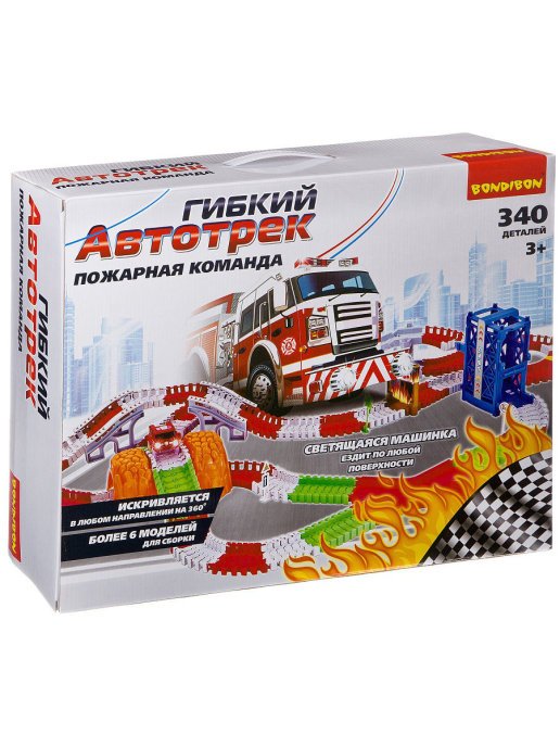 Купить Гибкий автотрек Пожарная команда 340 дет в Новосибирске Вы можете в магазине развивающих и настольных игр "Игры Почемучек".