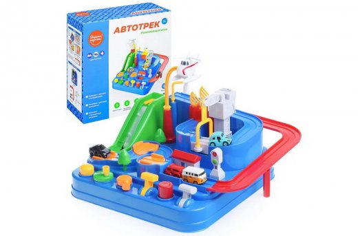 Детский Автотрек тренирует реакцию и координацию движений, развивает цветовое восприятие, знакомит с принципами механики. Используя 6 элементов механического управления, малыш без труда справится с прохождением трассы, подъёмом по эскалатору, полётом на вертолёте, проездом по мосту и перемещением с помощью крана и быстро окажется на финише.