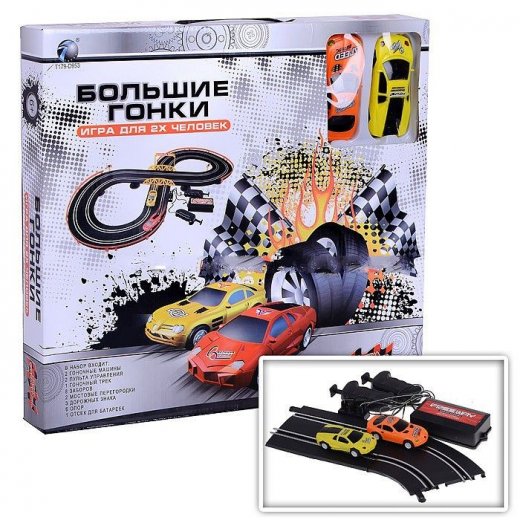 Трек в коробке – привлечет внимание каждого любителя гоночных соревнований и азартных развлечений. Набор состоит из двух гоночных автомобилей и элементов для сборки уникального гоночного трека. При помощи двух пультов управления, подключающихся проводами к специальному отсеку на треке, можно управлять автомобилями и их скоростями. Отсек для пультов управления может работать как от батареек, так и от сетевого адаптера. Устрой с друзьями настоящие гонки! Собери трассу, выбери себе автомобиль, взмах флагом – и вперед!