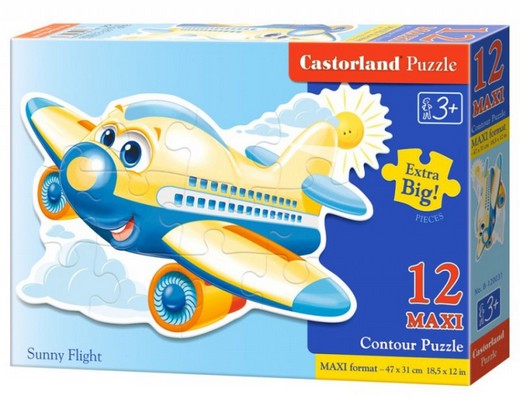 Пазлы MAXI "Солнечный полет 12 д." - представляет собой набор из двенадцати элементов, которые предстоит собрать ребенку, чтобы получить цельное изображение. Собрав все 12 элементов в единую картину можно увидеть веселый самолетик, пролетающий над облаками.