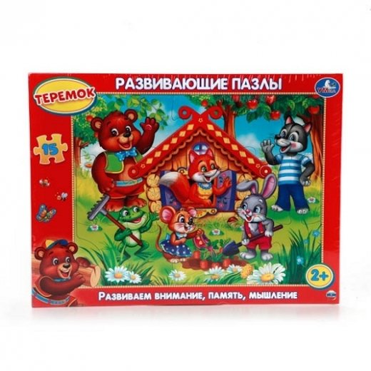 Пазлы в рамке "Теремок" от бренда "Умка" состоят из 15 элементов. Из них ребенку предлагается собрать картинку, созданную по мотивам сказки теремок. Пазлы представлены с рамкой, чтобы можно было сохранить собранное произведение.