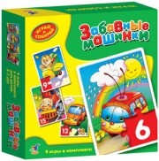 Играй и собирай "Забавные машинки 4 в 1" представляют собой комплекты из четырёх пазловых картинок, состоящих из 6, 9, 12 и 15 элементов. Размер каждой картинки в собранном виде: 16х23 см.
