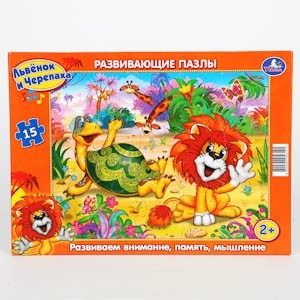 - Пазлы в рамке Львенок и черепаха 15 дет.