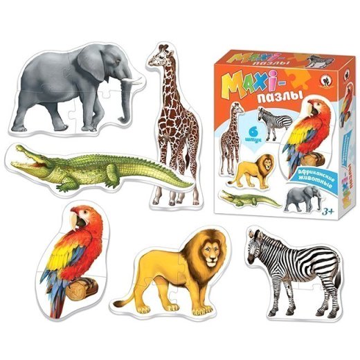Купить Пазл MAXI Африканские животные 6 штук в Новосибирске Вы можете в магазине развивающих и настольных игр "Игры Почемучек"