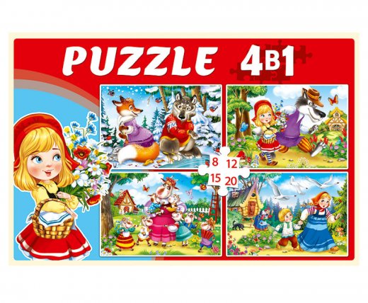 - Пазлы набор 8 дет., 12 дет., 15 дет., 20 дет. Сказки из детства (4в1)