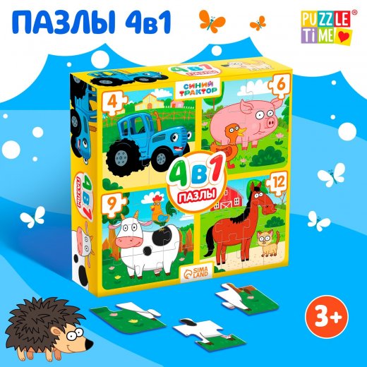 - Пазлы Синий трактор на ферме 4-6-9-12 дет