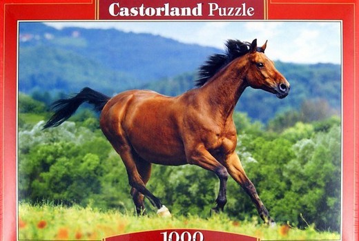 Пазлы "Лошадь 1000 дет" состоит из одной тысячи элементов и на нем изображен гнедой скакун, скачущий по цветущему полю. Пазл является достаточно сложным для новичков, так как их количество, а также маленький размер заставит потратить не один час свободного времени на их сборку.