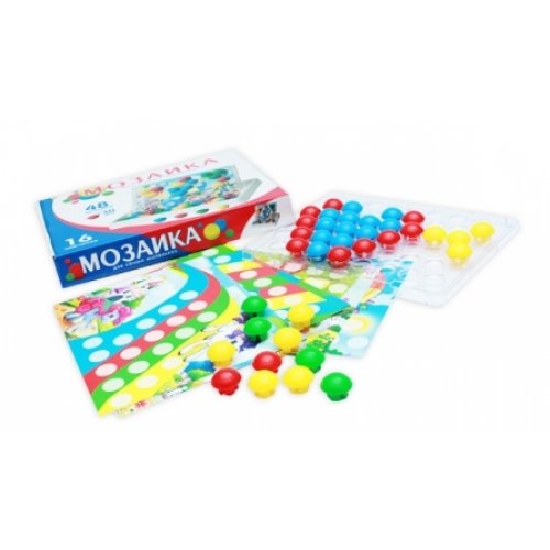 "Мозаика 48 дет." порадует всех ребят, а также сделает их времяпрепровождение интересным и полезным. В комплект входит множество деталей различных цветов, игровое поле, а также схемы с различными картинками. Ребенок сможет собирать уже готовые изображения или свои собственные - подобный процесс способствует развитию воображения и мышления.