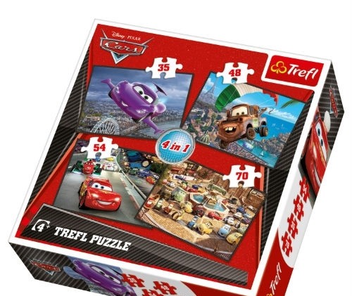 Набор пазлов «Начнем путешествие: 4 в 1» - это отличный подарок для маленьких любителей гоночных автомобилей и поклонников популярного мультфильма «Тачки 2».