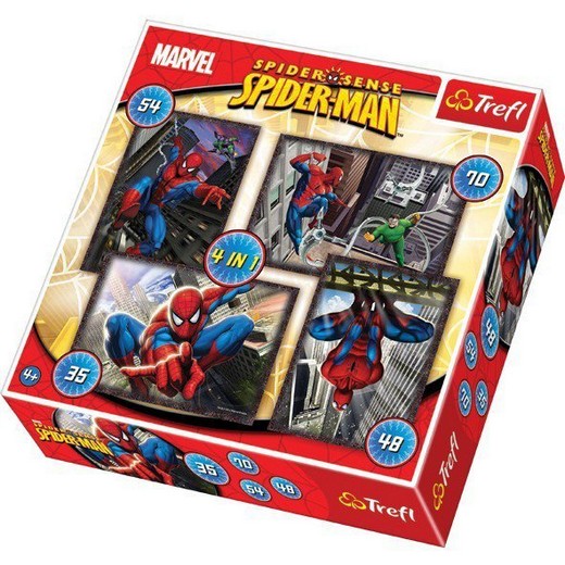 Набор пазлов "Человек-паук" 4-в-1 - это 4 пазла на 35, 48, 54 и 70 деталей. Во время игры развивается логика, моторика, воображение.