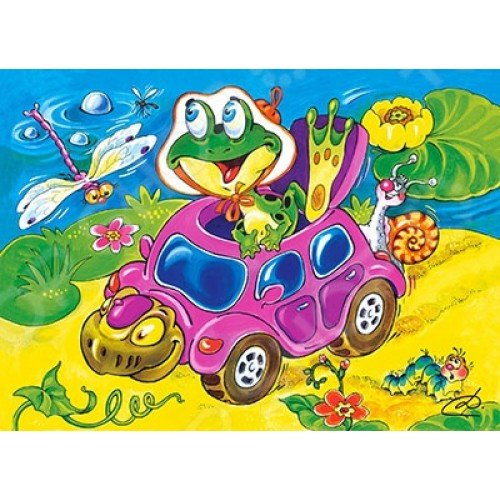 Пазл станет замечательным и полезным подарком для вашего ребенка. С увлечениям собирая красочную картинку с изображением любимых сказочных героев. На изображении пазла от польской компании Castorland герой Лягушенок сидит в такси-черепахе.