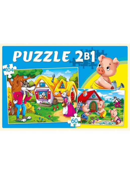 В комплекте 2 пазла 60 и 104 элемента.