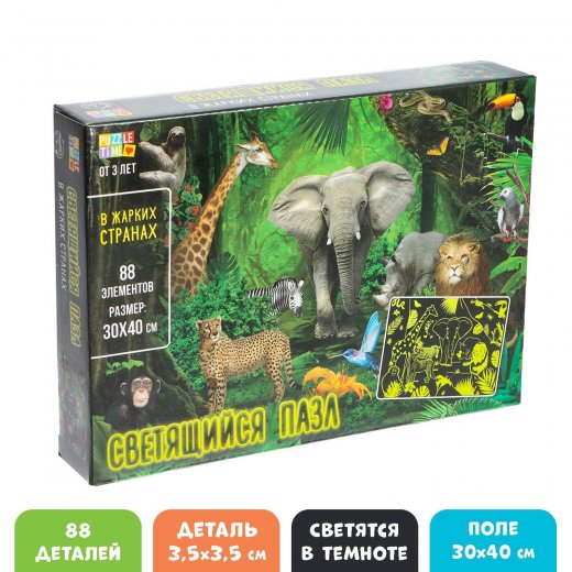 Купить Пазлы светящиеся «В жарких странах», 88 деталей в Новосибирске Вы можете в магазине развивающих и настольных игр "Игры Почемучек"