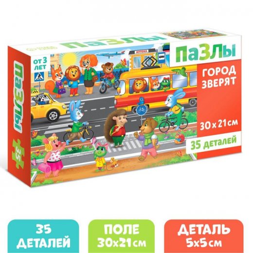 Купить Пазлы «Город зверят», 35 дет в Новосибирске Вы можете в магазине настольных и развивающих игр "Игры Почемучек"