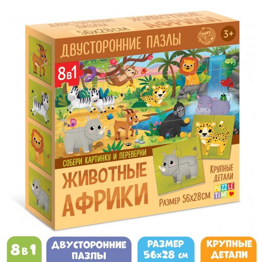 Пазлы двусторонние 8 в 1 Животные Африки