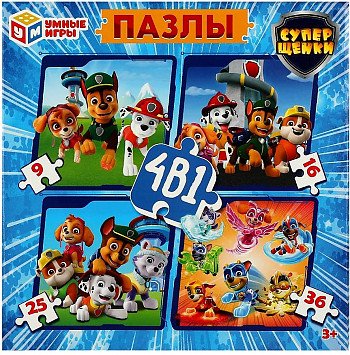 Купить Пазлы 4 в1 Суперщенки 9-16-25-36 дет в Новосибирске Вы можете в магазине развивающих и настольных игр "Игры Почемучек".