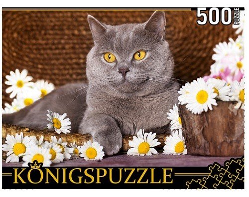 Купить Пазлы KONIGSPUZZLE Британский кот и ромашки 500 дет в Новосибирске Вы можете в магазине развивающих и настольных игр "Игры Почемучек"