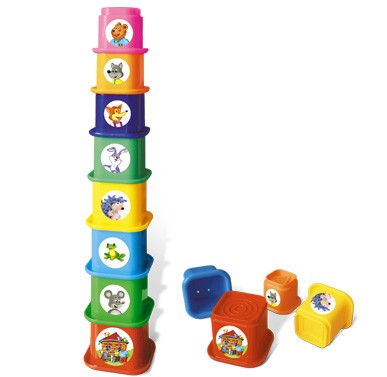 Пирамидка "Теремок" – это увлекательная пирамида-игрушка для вашего малыша. Она состоит из 8 разноцветных стаканчиков. На каждом стаканчике есть маленькая наклейка из глянцевой бумаги с изображением сцен из одноименной сказки "Теремок". На дне каждого стаканчика есть дырочки, через которые можно выливать воду, как через сито. С ней можно играть как в ванной, так и в песочнице. Все формы пирамидки удобно складываются в один – самый большой "стаканчик". Стаканчики квадратные с закругленными краями.  Если поставить их вверх дном друг на друга, то получится пирамидка свыше 30 см. Играя с игрушкой в ванной или песочнице, можно заодно познакомить малыша со сказкой и ее персонажами.  Пирамидка "Теремок" изготовлена из безопасных и экологически чистых материалов, покрыта безопасными красками.