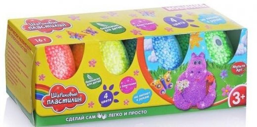 - Набор шарикового пластелина крупнозерн.,4ц., с блестк.,с глазами