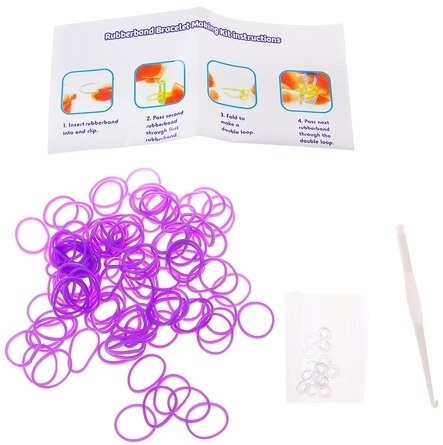 Плетение из разноцветных резиночек – это модное направление в рукоделии. Легкое и невероятно увлекательное занятие не займет много времени, но доставит массу удовольствия, а результатом творчества станут стильные радужные украшения: браслеты, колье, ремешки, сережки, колечки и многое другое. Резинки изготовлены из гипоаллергенного латекса и представлены в самых разных расцветках, можно очень просто подобрать любимые цвета и смело экспериментировать. Изделие можно сплести руками, крючком для вязания (размер: 4 – 4,5 см) или при помощи специального приспособления (станок или рамка со стержнями, для фиксации резинок). Набор для плетения браслетов из резиночек, сиреневый - это яркий набор, который позволит ребенку создать неповторимый, яркий образ и развить любовь к творчеству, чувство вкуса и стиля. Процесс плетения увлечет не только детей, но и взрослых.