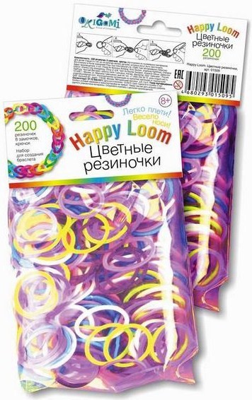 Из разноцветных резиночек Happy loom создаются самые разные узоры. Можно сплести не только браслет, но и колечки или ожерелье. Резиночки из яркого качественного силикона - безопасного для детей материала.