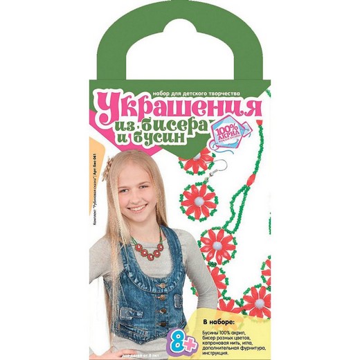В наборе: бусины 100% акрил, бисер разных цветов, капроновая нить, игла, инструкция . Размер: 21 x 11 x 5 см.