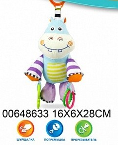 Мягкая погремушка "МиниБамбини" представляет собой погремушку, сделанную в виде забавного бегемотика. В игрушке представлены: шуршащие элементы (ушки, лапки), пищалка (животик), прорезыватель, пластмассовые колечки-браслеты, резиночка. При встряхивании погремушка издает приятные звуки, что обязательно увлечет ребенка. Веселый и добрый бегемотик с забавной улыбкой и открытым взглядом поднимет настроение и заставит улыбнуться. Погремушка подвешивается с помощью надежного крепления на кроватку или коляску. Мягкая погремушка "МиниБамбини" изготовлена из нетоксичного, безопасного для детей материала - мягкой ткани и пластика, безопасного для вашего малыша.