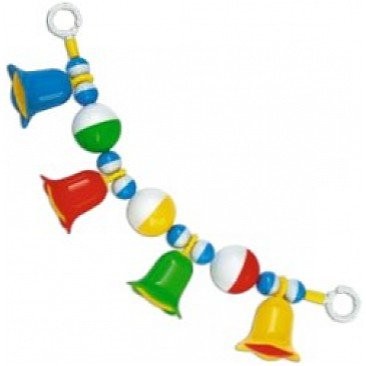 Погремушка подвеска "Колокольчик" станет незаменимой игрушкой в первые месяцы жизни малыша. На круглую толстую резинку нанизаны погремушки – шарики и колокольчики, а по краям кольца-клипсы. Погремушка подвешивается с помощью надежного крепления на кроватку или коляску. При потрясывании погремушка издает приятный мелодичный звук, который заинтересует малыша. Погремушка подвеска "Колокольчик" сделана из нетоксичного, безопасного для детей материала, не вызывает аллергических реакций.