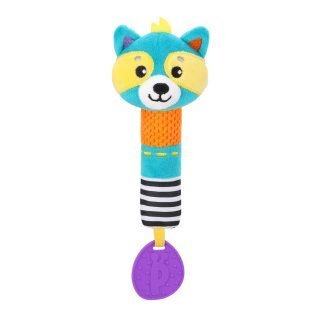 Внутри туловища этого милого енотика спрятана звонкая пищалка. Она будет веселить маленького непоседу каждый раз, когда он будет сжимать на игрушку своей маленькой ручкой. Забавный звук пищалки поспособствует развитию у крохи хватательного рефлекса, ведь ему будет хотеться нажимать на игрушку снова и снова!