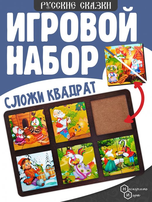 Купить Развивающая доска Сложи квадрат Русские сказки в городе Новосибирске Вы можете в магазине настольных и развивающих игр "Игры Почемучек"