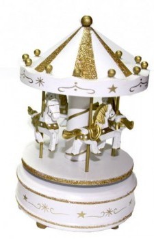 "Карусель музыкальная с лошадками" подойдет как для самых маленьких, так и для более старшего поколения. Пока каруселька крутится, звучит приятная музыка. Хотя сами лошадки стоят на месте (крутится только поддон), создается впечатление, что они прыгают вверх-вниз. Малыши до года будут поворачивать головку в сторону услышанной мелодии, дети от года могут потанцевать под музыку, более старшие использовать ее как образец для рисования. К тому же ребенка наверняка заинтересует сам процесс (каким образом карусель крутится?), что послужит основой для навыков конструирования. Каруселька послужит не только украшением детской комнаты, но и будет хорошим сувениром для взрослых.