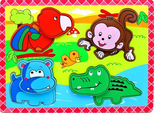 "Вкладыши деревянные" в игровой форме развивают мелкую моторику рук, внимательность, мышление, познавательный интерес, обогащают словарный запас и расширяют кругозор ребенка, а так же знакомят малышей с некоторыми видами африканских животных.