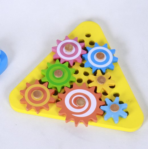 Пазл "Шестеренки" - увлекательный и познавательный пазл-шестеренки с крупными деталями. На деревянной доске в хаотичном порядке расположено 7 колышков, на которые надеваются шестеренки разного размера. Задача малыша разместить яркие элементы так, чтобы поворачивая одну шестеренку, можно было привести в движение весь механизм.