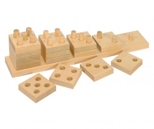 Пирамидка счетная "Домино" пятиступенчатая пирамидка для игры и обучения счету. Представляет собой 5 пирамидок, образующих "ступеньки", причем количество в каждой из них, пропорционально количеству отверстий в деталей и количеству стержней. "Плашки" можно не только нанизывать на стержни, сооружая пирамидки, но и использовать как строительный материал или материал для шнуровки. Пирамидка выполнена из натурального неокрашенного массива сибирской березы, детали у них тщательно обработаны, зашлифованы и идеально подходят друг к другу.