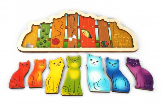 Купить развивающая доска "Разноцветные котята" в Новосибирске Вы можете в магазине настольных и развивающих игр "Игры Почемучек".