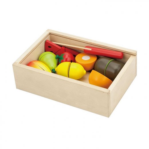 Комплектация: фрукты 8 шт., нож, доска, деревянный ящик.