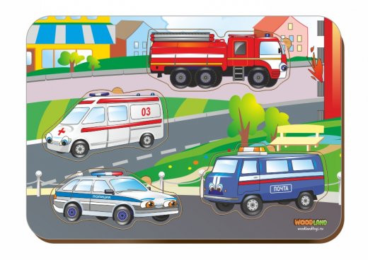 Купить деревянный вкладыш "Спец автомобили" в Новосибирске Вы можете в магазине развивающих и настольных игр "Игры Почемучек".