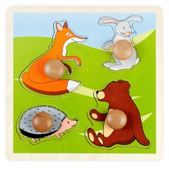 Рамка-вкладыш "Животные" подойдет для самых маленьких малышей. На деревянной рамке-планшете в специальных выемках находятся вкладыши с изображением лесных животных: лисы, зайца, медведя и ёжика. В центре каждого вкладыша есть деревянная ручка для того, чтобы ребенку было удобнее вынимать и вставлять на место яркие картинки. Задача ребенка, основываясь на размерах и форме вкладыша подобрать для него нужное отверстие. Гладкие, тщательно обработанные фигурки удобно держать в руках. Все детали игрушки изготовлены из экологически чистой древесины, они не токсичны, аккуратно обработаны по краям и абсолютно безопасны для детей.