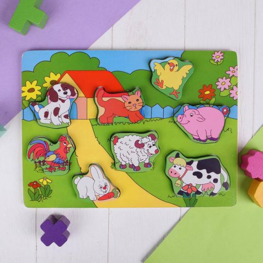 Рамка вкладыш "Животные во дворе" развивает мелкую моторику пальчиков, координацию движений и цветовое восприятие малыша. Учит внимательности и усидчивости, расширяет кругозор.