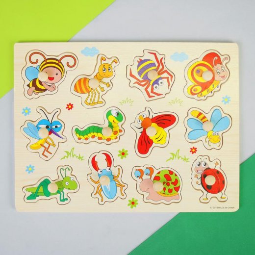 Рамка-вкладыш "Насекомые" представляет собой дощечку с вырезанными в ней фигурками. Набор состоит из 12 разных по размеру и содержанию вкладок, каждая из которых снабжена удобной ручкой. Под каждым вкладышем есть аналогичная картинка-подсказка. Во время игры ребенку нужно вставить фигурки (вкладыши), соответствующие картинке или форме выреза. Все детали игрушки изготовлены из экологически чистой древесины, они не токсичны, аккуратно обработаны по краям и абсолютно безопасны для детей.