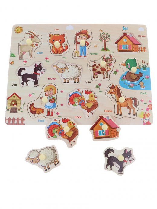 Как играть: в пазле нужно каждый элемент вложить на свое место на доске. Также части пазла можно использовать для трафарета: обвести фигурку, а потом разукрасить. Так же ваш ребенок сможет выучить животных на английском языке.