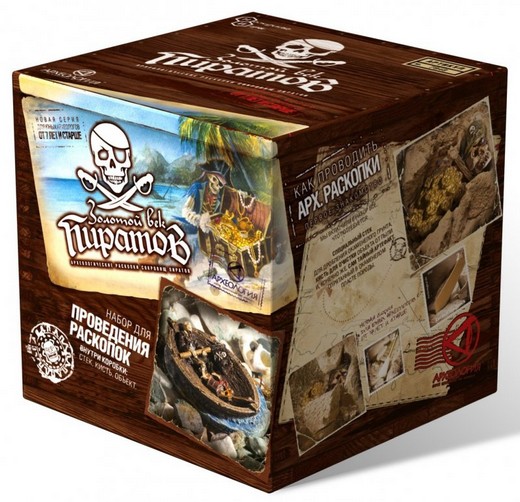 "Археологические раскопки сокровищ пиратов"- увлекательный набор, позволяющий почувствовать себя юным археологом и проникнуть в тайны древности. Этот кусочек земли с необитаемого острова в Атлантическом океане содержит в себе пиратский клад. Чтобы узнать, какой, тебе нужно произвести раскопки самому! В этой коробке находится уникальный археологический набор, содержащий пласт окаменелой земной породы с настоящей копией пиратского клада. Внутри вы также найдете специальные археологические инструменты, старинные открытки с места раскопок, записки археолога, красочную инструкцию, раскрывающую тайну процесса раскопок в увлекательной игровой форме.