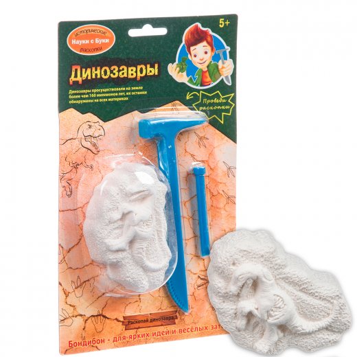 Проведи раскопки и познакомься с разнообразными детенышами динозавров! В наборе - гипсовый блок для проведения раскопок и специальные археологические инструменты. Перед проведением раскопок гипсовый блок необходимо опустить в воду на непродолжительное время. По итогам работы ты найдешь одно из шести динозавриков в яйце! Bondibon - для ярких идей и веселых затей!
