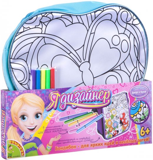 Лицевая сторона гладкой тканью, хорошо удерживающей на себе цветные узоры и подчеркивающей их насыщенность. На белом фоне расположены крупные черные контуры рисунков: бабочки, сердечки, цветы и звезды. Фломастеры пяти цветов дают простор для фантазии. С таким рюкзачком, оформленным своими руками, ребенок будет выглядеть модно и стильно. Создавать своими руками вещь, которая надолго поселится в гардеробе, очень волнительно и приятно!