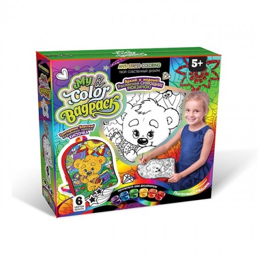 Комплектация: рюкзак, 6 красок, кисть, блестки.
