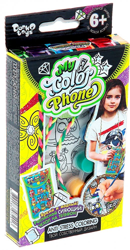Набор для творчества My Color Phone от производителя Danko Toys - это замечательная возможность проявить свою креативность. Ребенок с родителями может хорошо провести время, при этом раскрыть свой творческий потенциал и художественные способности. Данный набор интересен тем, что можно раскрасить чехол для телефона по своему усмотрению акриловыми красками и добавить блеска. Художник найдет в этом комплекте необходимые предметы и инструменты для раскраски, а также подробную инструкцию.