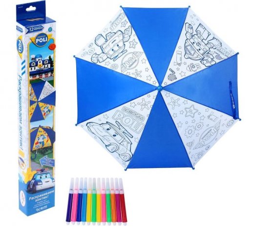 Набор для творчества "Робокар Поли" представляет собой зонтик и пять водостойких маркеров для его окрашивания по своему вкусу и собственному творческому замыслу. Зонтик в наборе самый настоящий, сделанный из качественной непромокаемой ткани. Благодаря изогнутой ручке его удобно держать в руке. А специальная пропитка ткани не позволит маркерам растекаться.