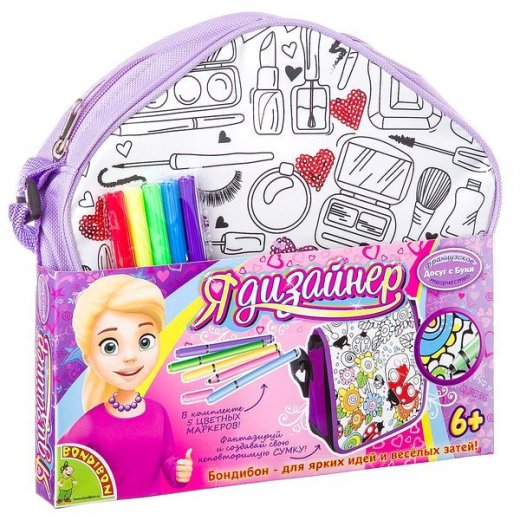 Сумка для раскрашивания Гламур - увлекательный набор для детского творческого досуга. Набор от Бондибон дает потрясающую возможность создать собственный стиль аксессуара! В наборе 5 специальных маркеров и сумочка размер 24х22 см. Маленьким модницам нужно лишь выбрать любимые цвета и раскрасить сумочку-основу маркерами. После раскрашивания маркеры надежно высыхают на поверхности, что исключает возможность испачкаться уже во время использования.